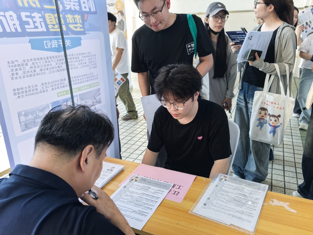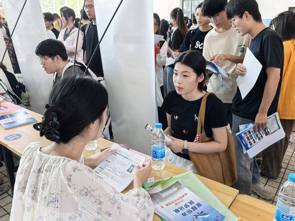 来自三地的江苏索普(集团)有限公司、航天海鹰(镇江)特种材料有限公司、江苏鱼跃医疗设备股份有限公司、苏州海陆重工股份有限公司、福挺科技(无锡)有限公司等近100家企业,携1600余个优质岗位进校揽才,岗位需求覆盖研发、生产、质量管理、市场营销等多个方向,为我校毕业生提供了丰富的就业选择。招聘会现场气氛热烈,秩序井然。毕业生们手持精心准备的简历,积极与心仪单位的招聘代表交流,详细了解岗位要求、发展前景及薪资待遇等。毕业生们扎实的专业基础、清晰的职业规划以及良好的沟通能力给用人单位留下了深刻印象。