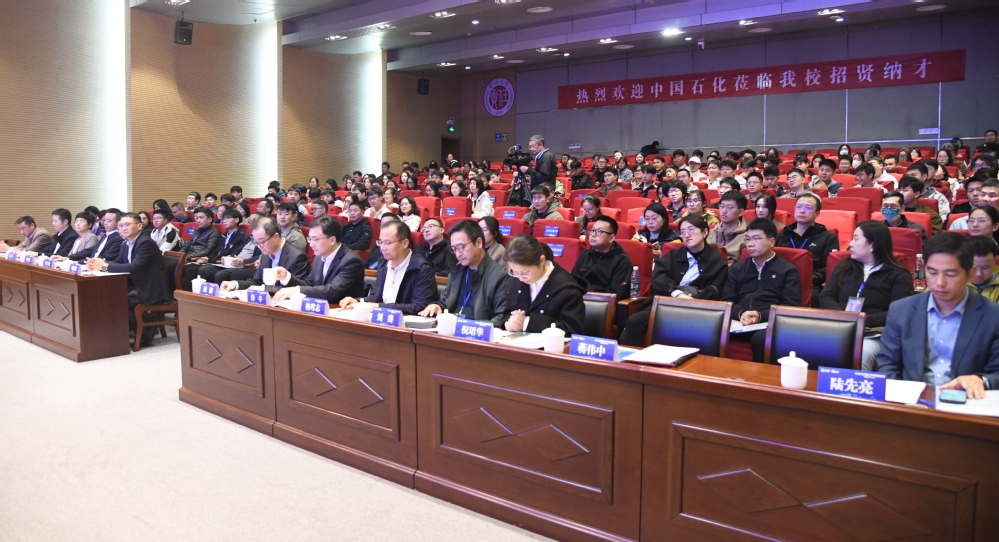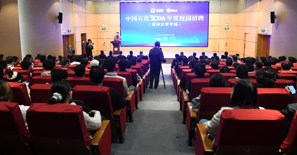 10月22日,中国石油化工集团有限公司(以下简称“中国石化”)来校举办2026年度校园招聘宣讲活动。扬子石化、高桥石化、石油工程建设公司、南化公司、镇海炼化、济南炼化、天然气分公司、经纬公司、江汉油田、南京工程公司、上海海洋石油局、华东石油局等所属36家企业参与招聘活动。常州大学党委常委、副校长周刚出席活动,2026届毕业生代表、有关学院学工负责人和毕业班辅导员等200余人参加宣讲会。宣讲会同步进行线上直播,吸引2000余人次在线观看。