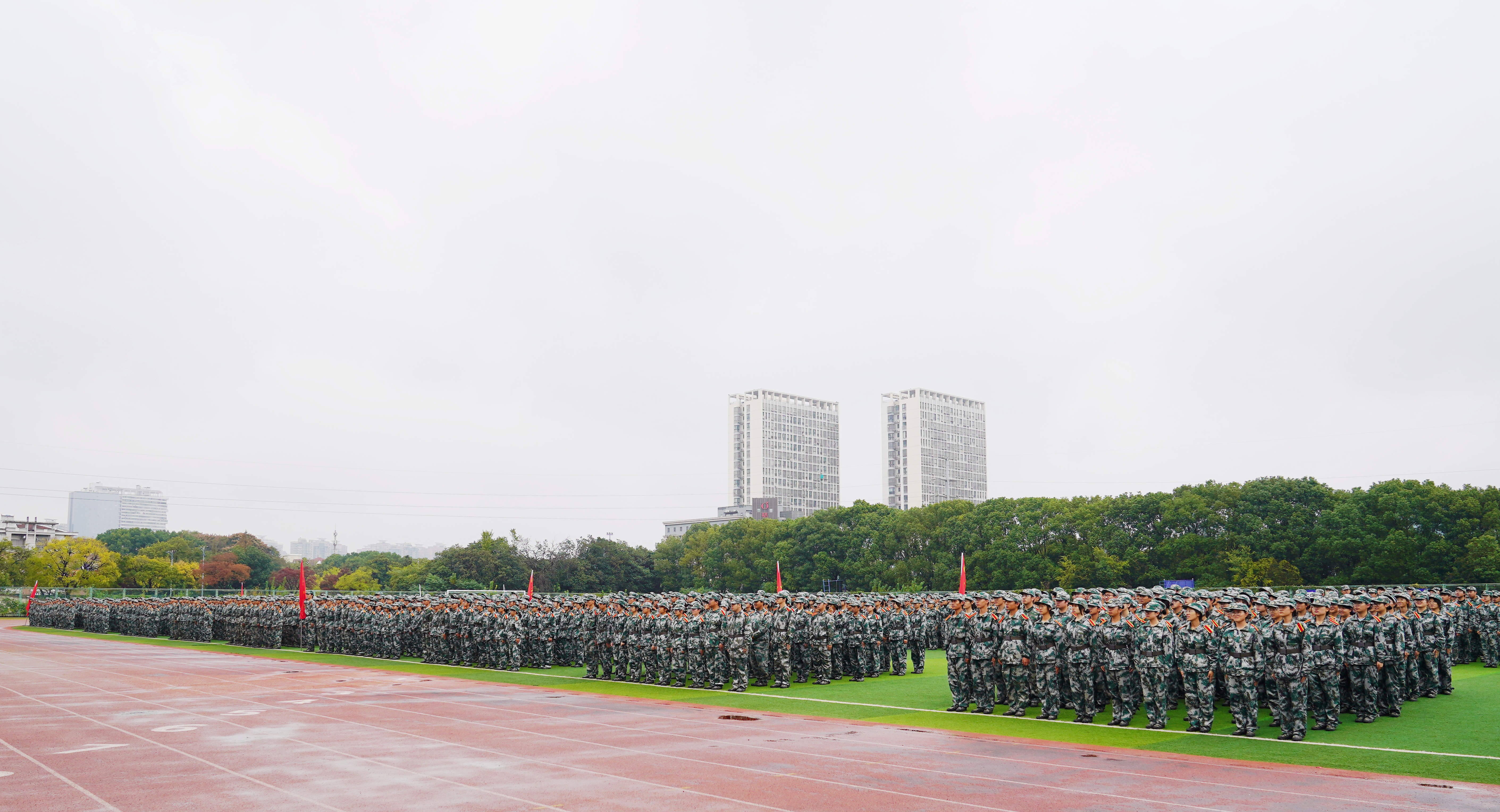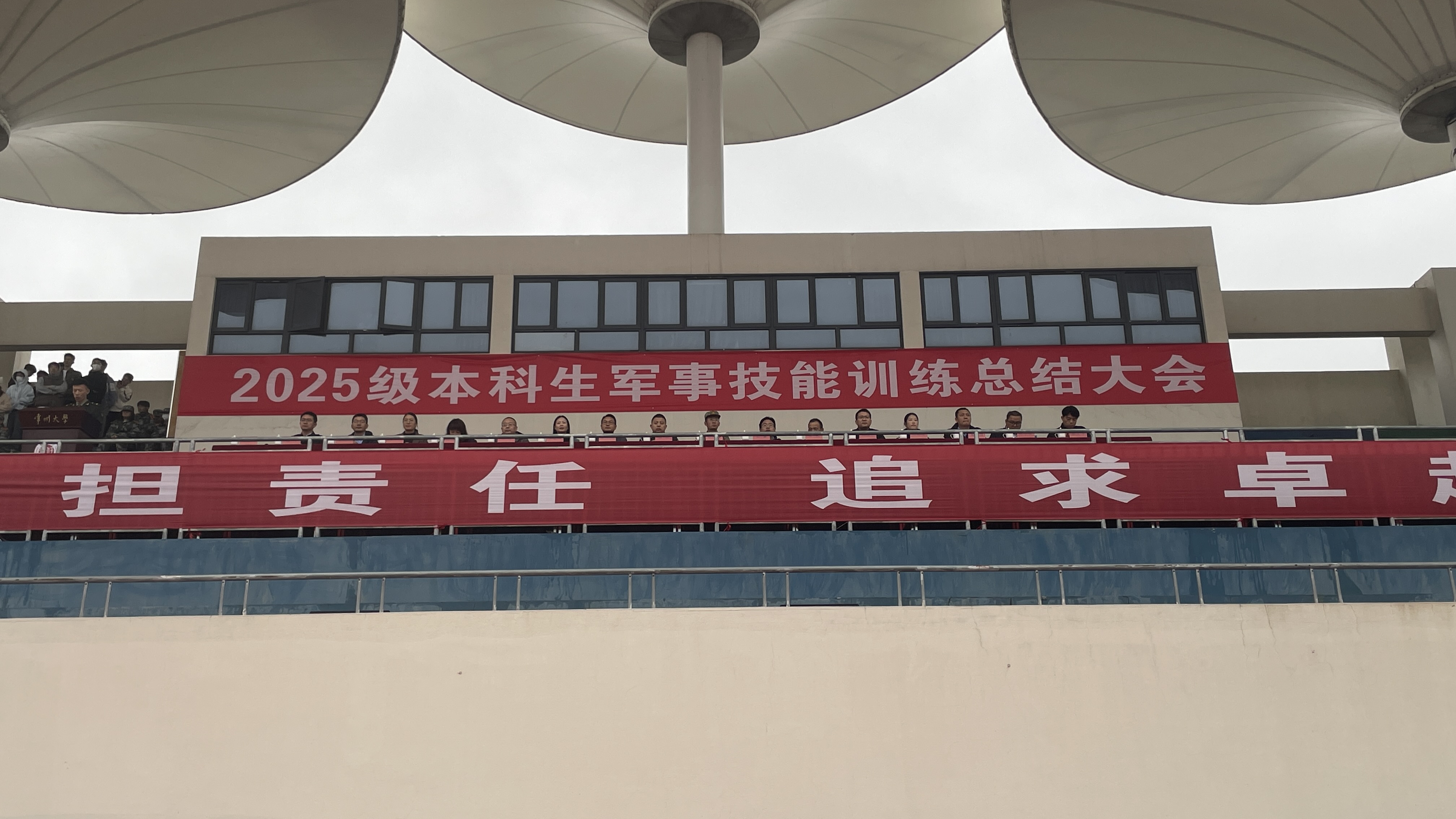 11月9日,常州大学2025级本科生军事技能总结大会在科教城校区与西太湖校区同时举行。承训部队负责人,各学院学工负责人,全体军事教员、政治指导员和2025级全体学员参加了总结大会。大会由党委人民武装部相关同志主持。
