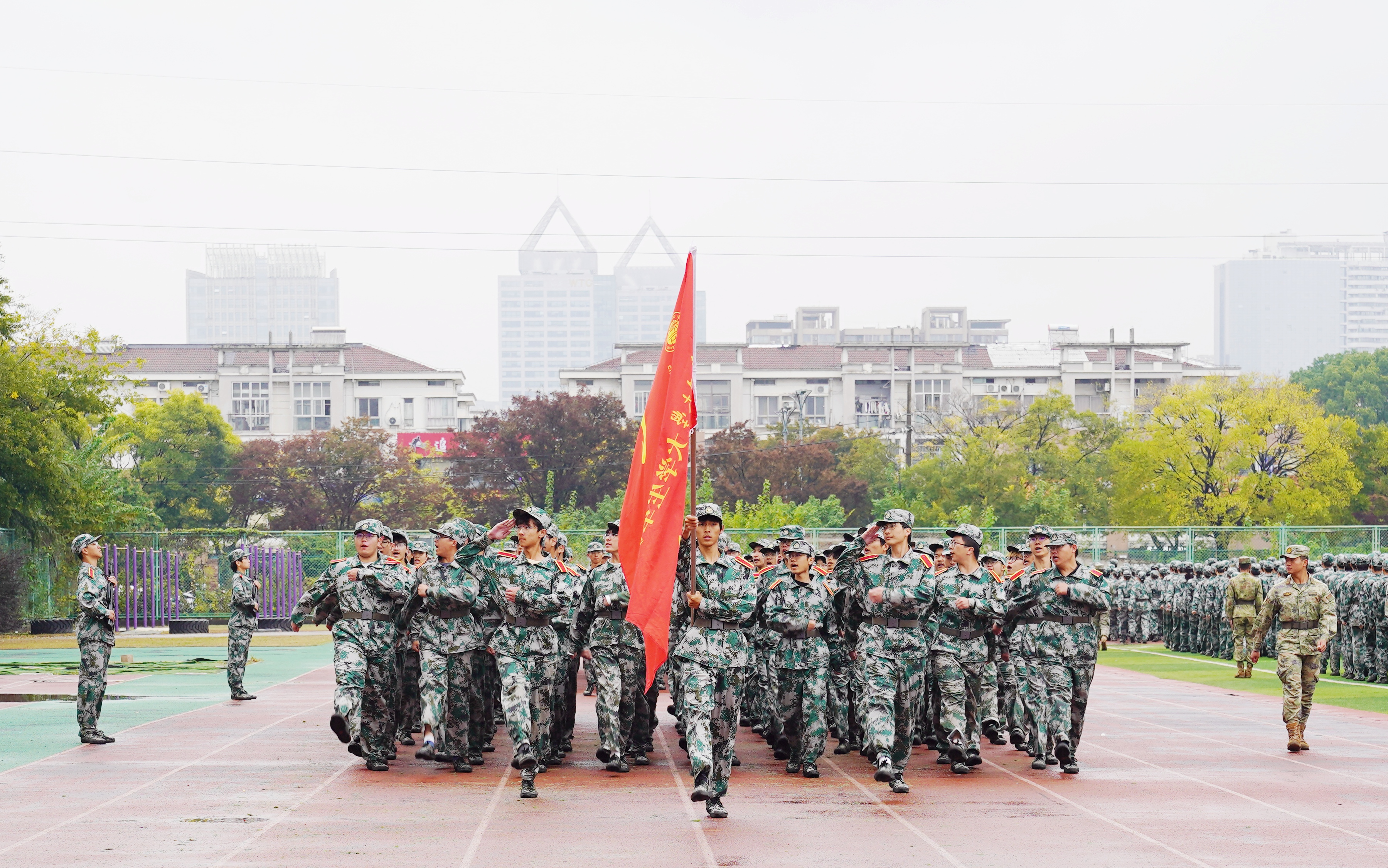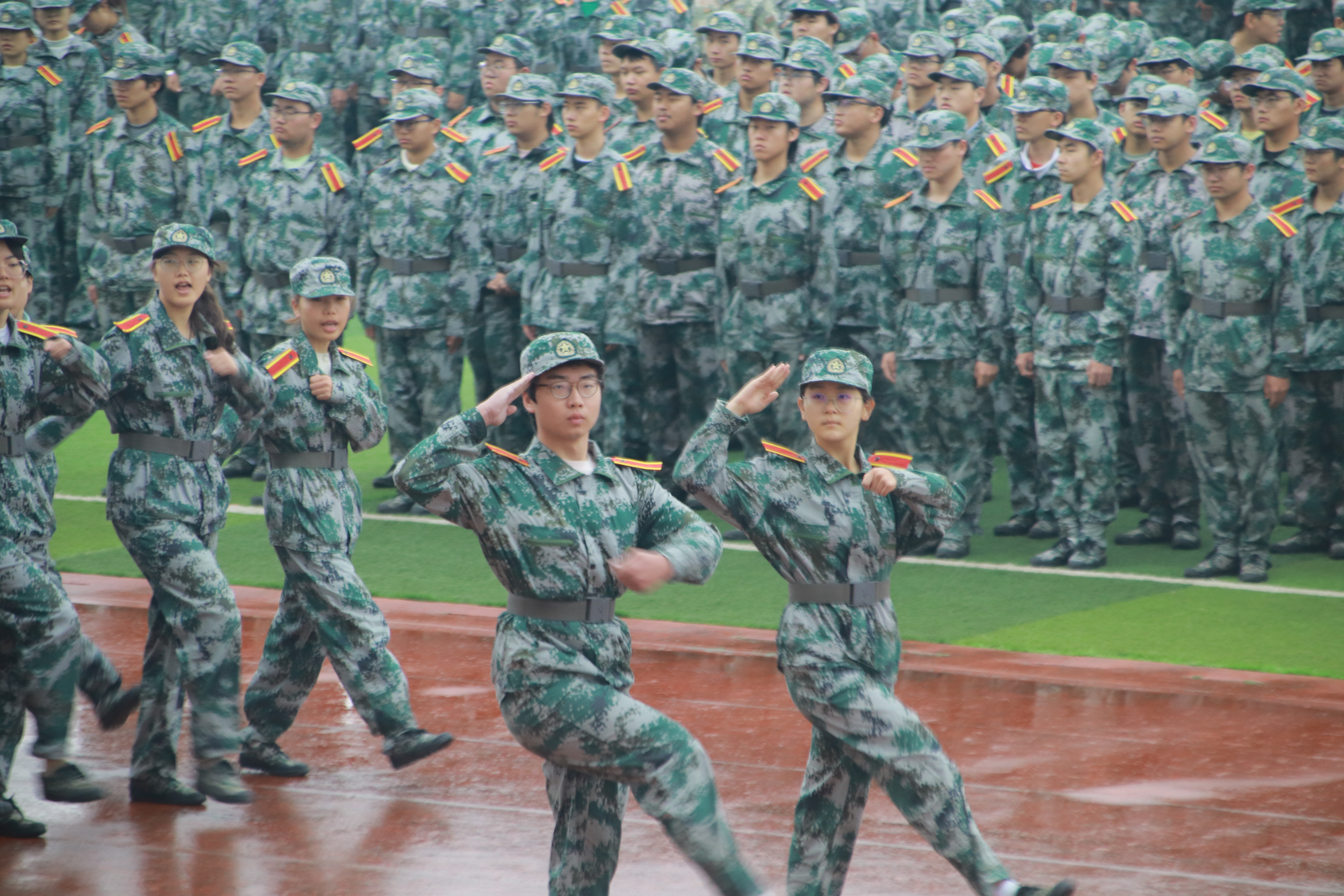 随后,在两校区的训练场上,由各学院组成的76个受阅方阵依次通过主席台,接受检阅。学员们精神抖擞,口号嘹亮,步伐铿锵有力,动作整齐划一,充分展现了常大学子经过军事训练锤炼后昂扬的精神风貌和严明的纪律素养。每一个挺拔的身姿,每一个坚定的脚印,都凝聚着十四天刻苦训练的汗水与付出,彰显出新时代青年蓬勃向上的朝气与报效家国的壮志豪情。现场掌声雷动,气氛热烈。