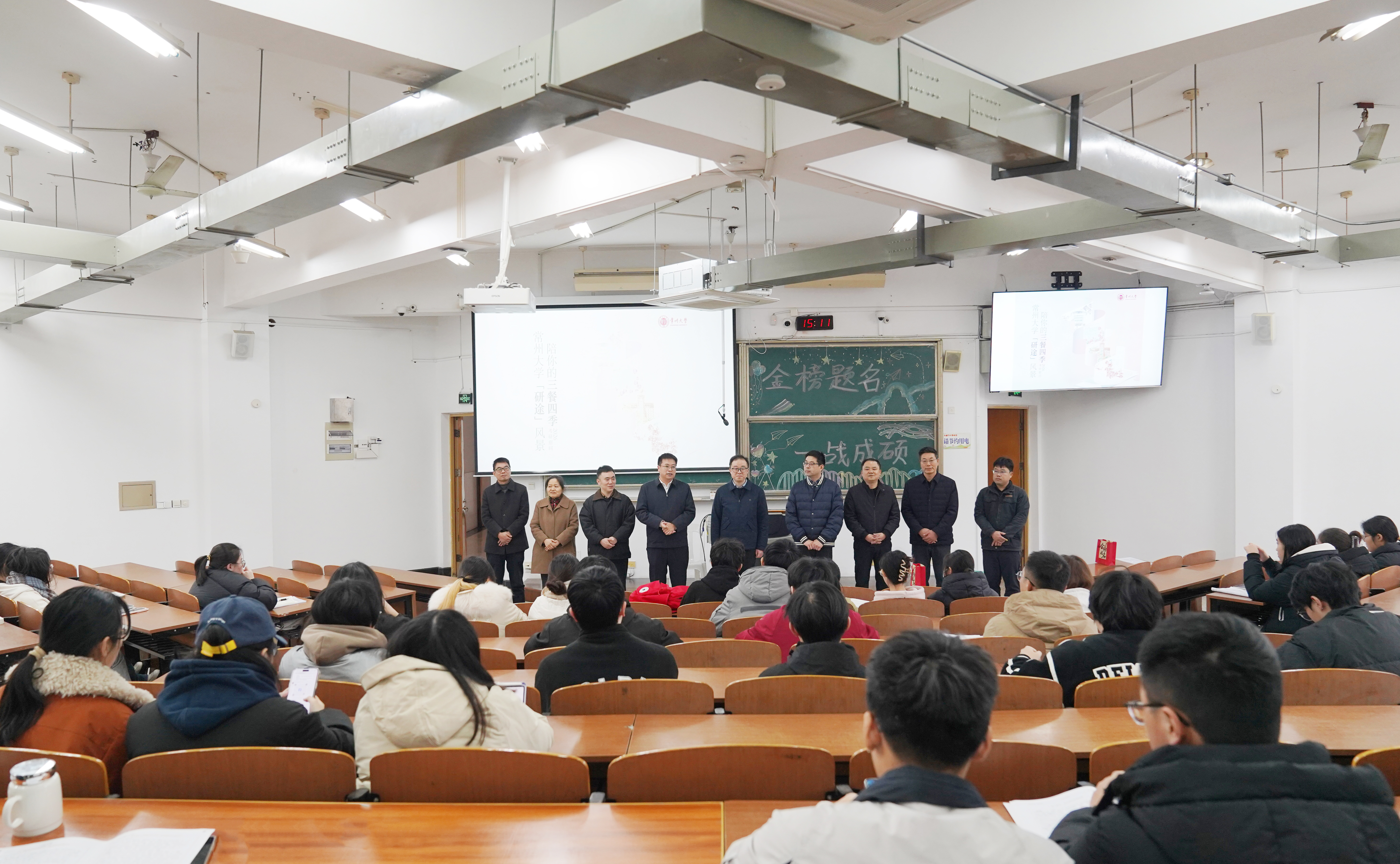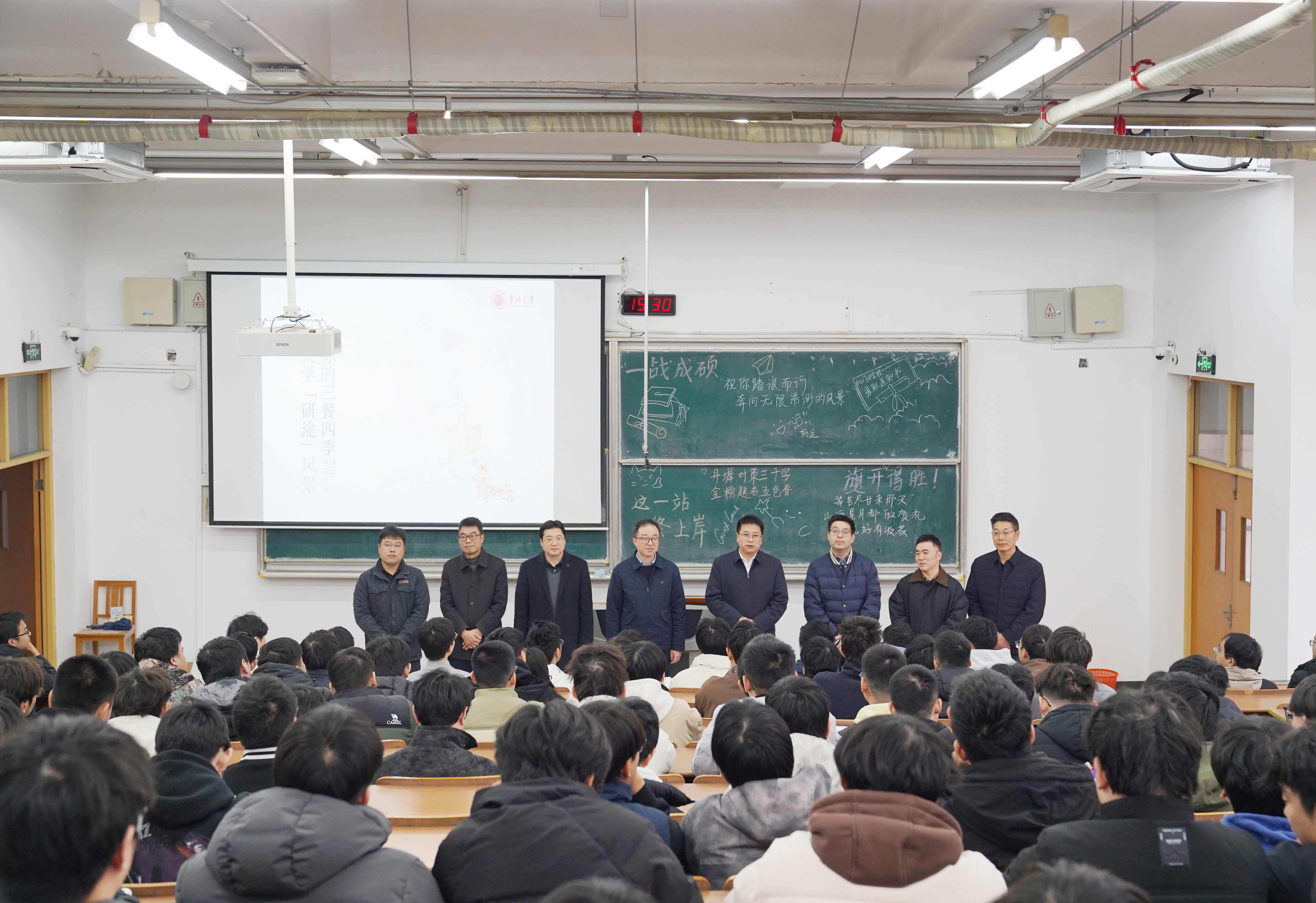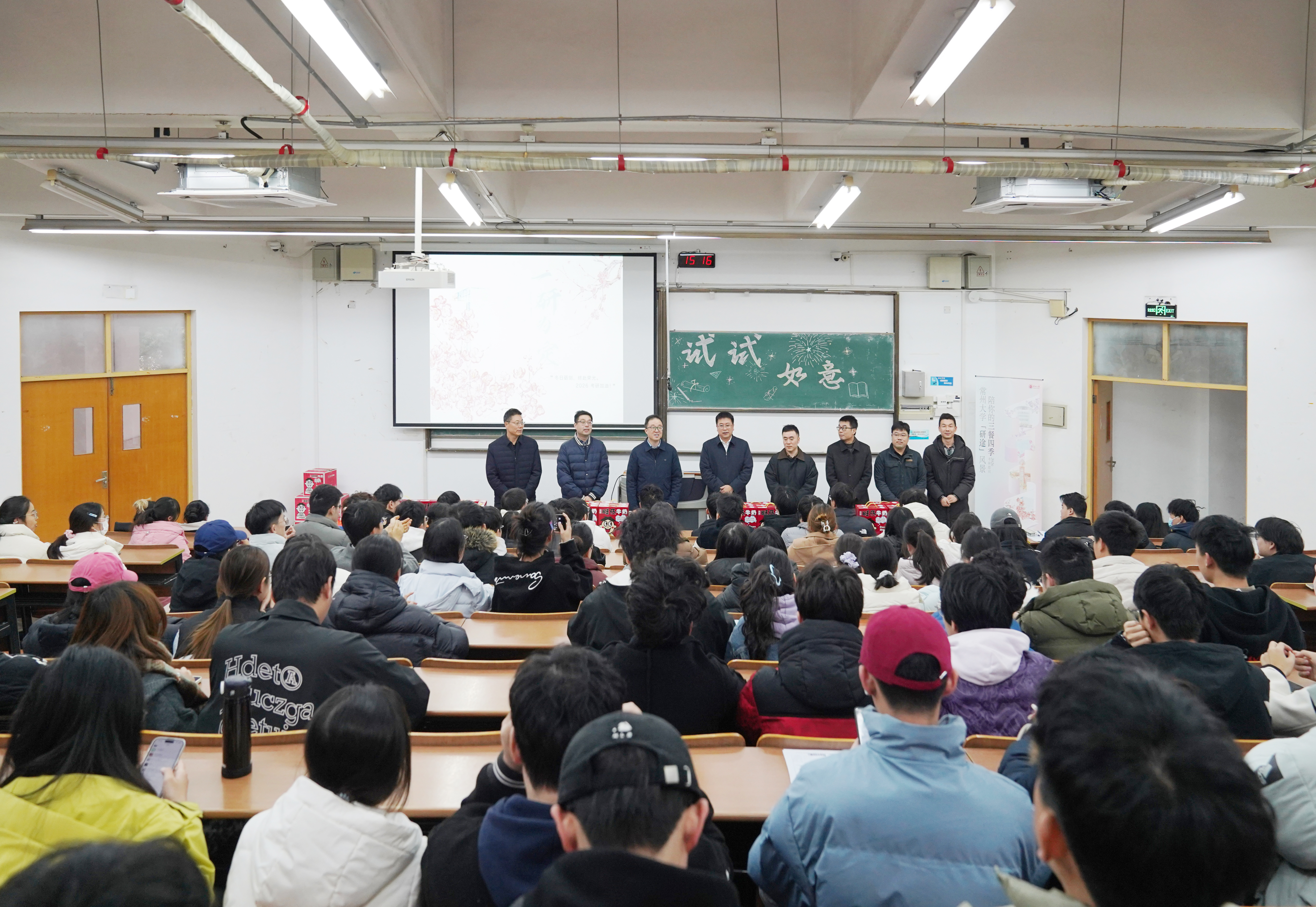 在备战2026年全国硕士研究生招生考试最后冲刺的关键时刻,为切实做好考研学生的服务保障工作,帮助他们缓解压力、坚定信心,12月12日下午,校党委常委、副校长周刚,校党委常委、副校长李亚飞深入两校区考研教室和“一站式”学生社区走访慰问考研学生。教务处、学生处、后勤管理处、西太湖校区管委会、资产经营公司等相关职能部门及相关学院负责人陪同慰问。