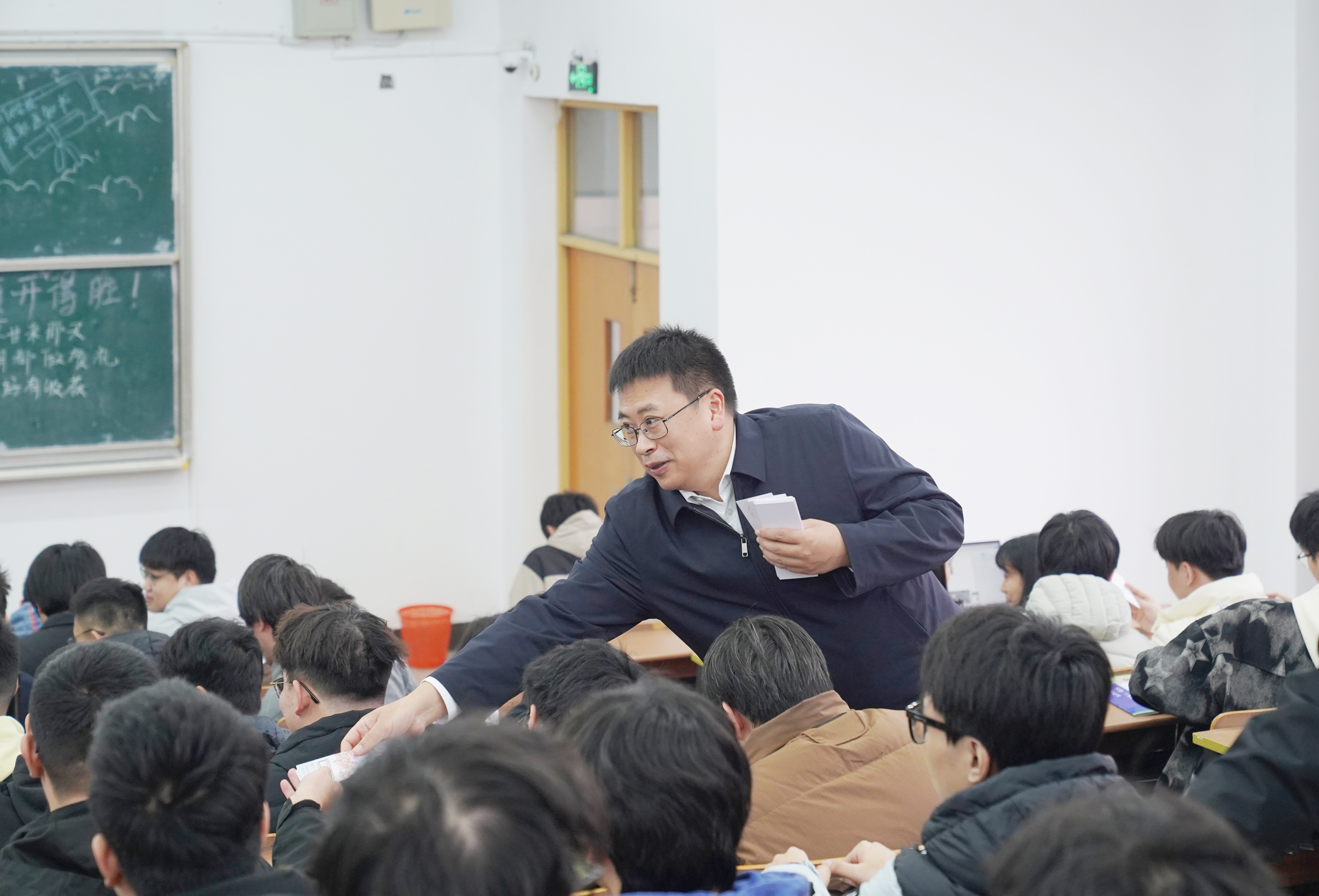 周刚详细询问了同学们的复习进度、心理状态与生活情况,对大家迎难而上、刻苦钻研的精神给予了高度赞扬,鼓励同学们要坚定理想信念,调整好心态,以自信从容的姿态迎接挑战。李亚飞叮嘱全体同学在冲刺备考的关键时期,做到劳逸结合、保重身体,以饱满的状态和昂扬的斗志决胜考场。