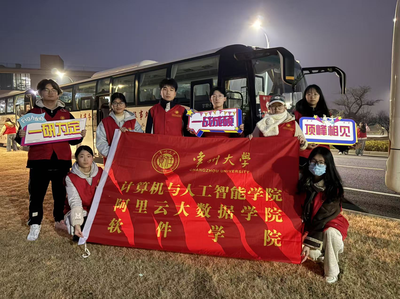 清晨校园里的大巴车已整齐列队,每辆车均明确标注编号、往返地,以及“一研为定”的祝福标语。学校提前规划送考路线,确保考生按时抵达考点,学院精心组织送考队伍,营造温馨有序的应考氛围。现场辅导员、志愿者们手持考生名单,逐一核对身份、提醒证件,用“唠叨”传递着牵挂。