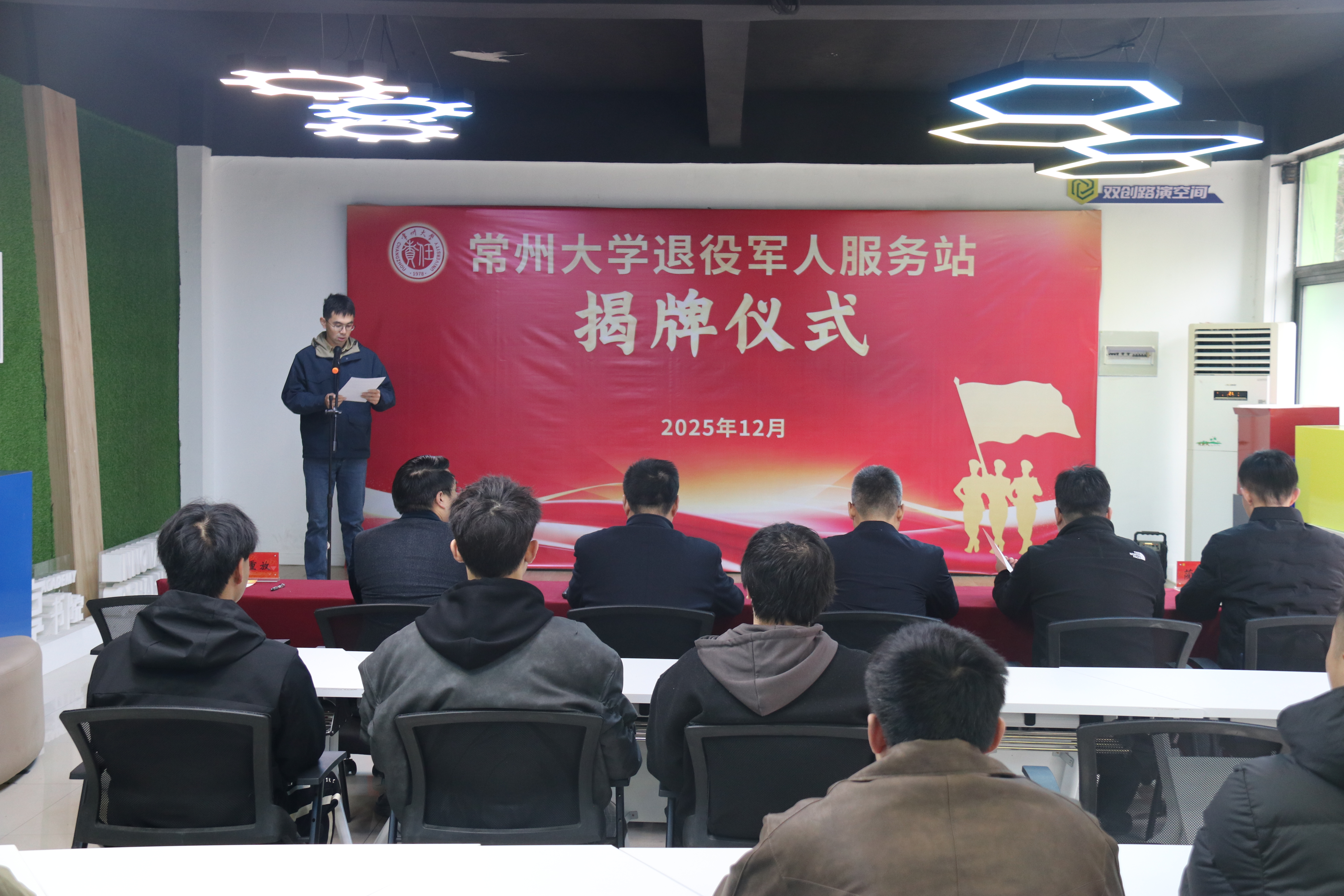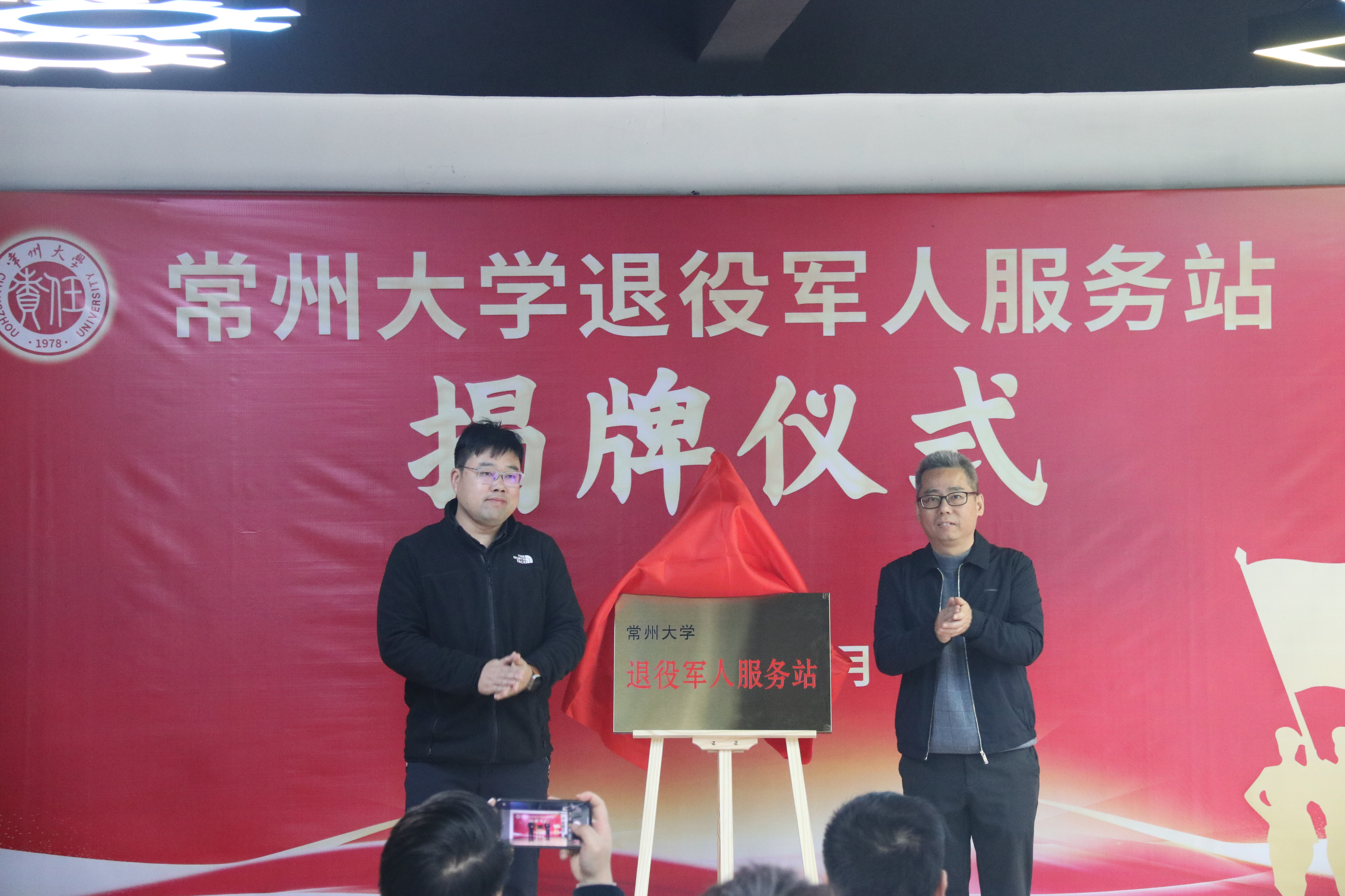 12月2日上午,常州大学退役军人服务站揭牌仪式在科教城校区创享书院举行。新北区退役军人事务局副局长王永刚、服务中心主任姚俊岐,常州大学党委人民武装部部长蒋伟中,副部长华德仁、副部长蔺旭鹏、人武部工作人员及退役士兵大学生代表共同参加仪式。