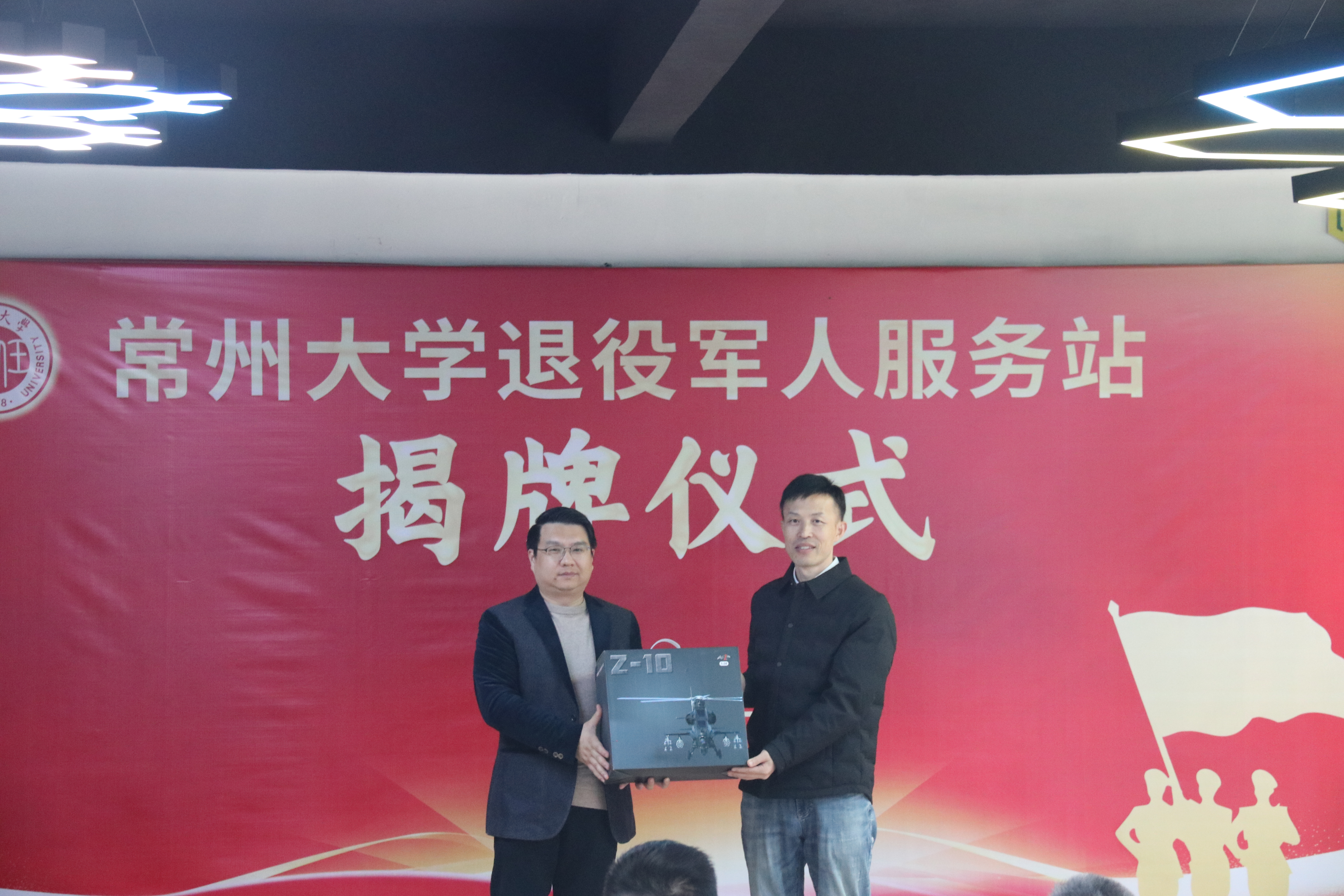 仪式上,王永刚与华德仁共同为“常州大学退役军人服务站”揭牌。姚俊岐向退役军人服务站捐赠了兵器装备模型。